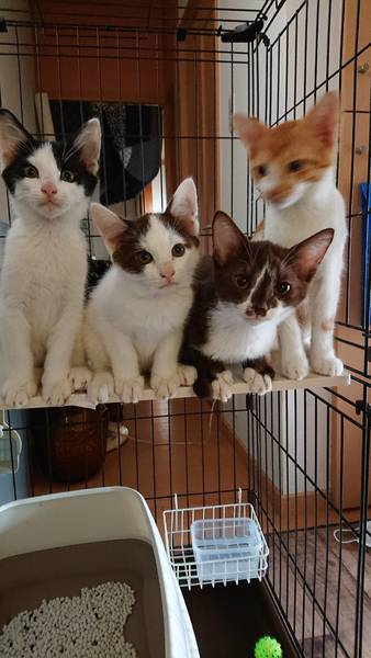 | 里親募集する理由 | TNR現場に 生後3ヶ月半過ぎと生後2ヶ月の仔猫8匹が捨てられました。 みんな一緒の場所でウロウロしてました。 明日になったら 何匹車にひかれてしまうか…そんな厳しい現場です。 全員 無事に保護できました。 病気等のたくさんの保護猫がいるため 元気で甘えたの可愛い仔猫ちゃんですので どうぞ よろしくお願いします。 フォー君の詳細はブログでご覧頂けます。 https://blog.goo.ne.jp/wakayama-2008/c/f795ed3664f728246147c08ab9e123d7 一緒に捨てられた仔猫ちゃんも ブログでご覧頂けますので よろしくお願いします。 |
