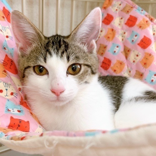 | 里親募集する理由 | ベランダでメス猫にご飯をあげていた方から、そのメス猫が子猫を産んで連れてきたと相談がありました。子猫は飼えないということだったので、保護して里親さんを探すことにしました。 ママは手術をして、ご飯をあげていた方が飼って下さることになり、幸せな家猫さんになりました。 |