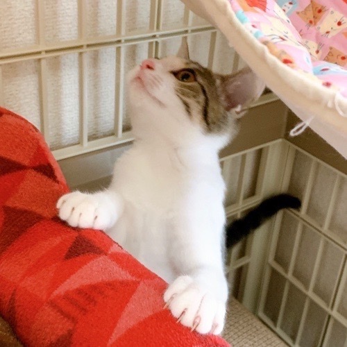| 特徴(性格など) | 一度トライアルに出ていましたが、先住猫さんが調子を崩してしまい、この度再度ご縁をつかみに参戦しました! とてもイケメンでおしゃべり猫のりょうくん。遊びが大好きでいつも全力です(笑) 遊び疲れると膝の上で眠ったり、なでなですると、ゴロゴロふみふみがとまらず、、飼い主様のハートを鷲掴み間違いなし! 快食快便で健康優良児。 元気一杯で可愛く、ザ・子猫といった感じの男の子です。 |