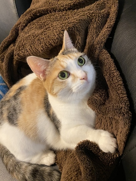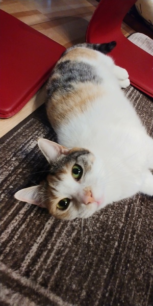 | 特徴(性格など) | 三毛で、とても美人さんです。性格はおっとりです。人懐こいですが、ツンデレな時もあってかわいいです。ごはんもよく食べ病気になったこともありません。お腹が空いた時と甘えたい時以外はあまり鳴きません。 | ||