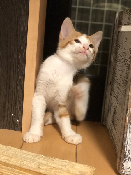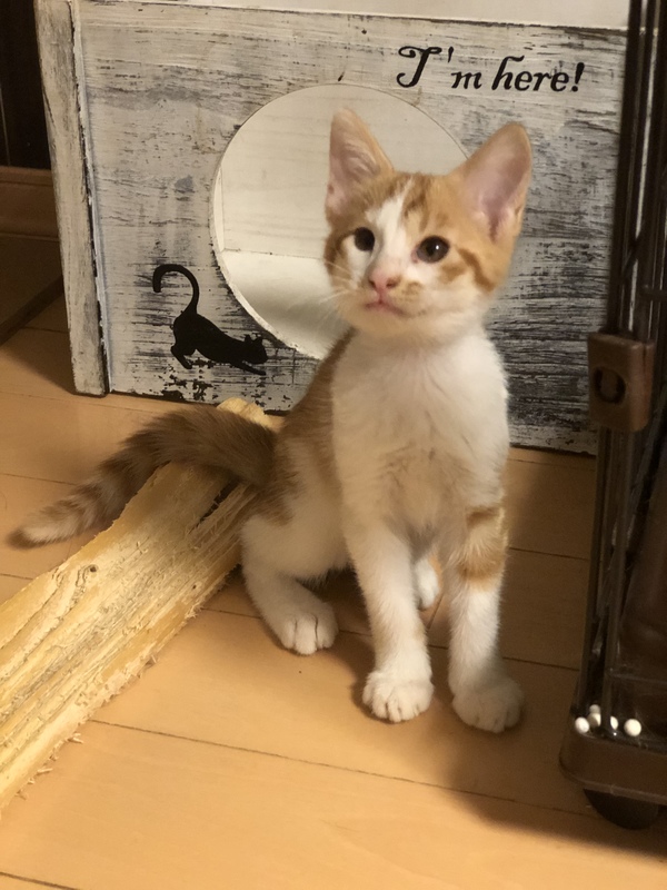 | 特徴(性格など) | 仮名 エイト君 性別 男の子 年齢 獣医推定2ヶ月 性格 甘えた。 特徴 茶白。まっすぐ尻尾。 その他 1回目便検査スミ。ブロードラインスミ。ワクチン接種予定。 先生からウイルス検査はまだ幼いためもう少し先でと言われました。 |