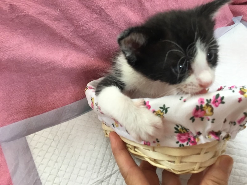 | 特徴(性格など) | 大きなおめめで、甘えん坊です。 ミルクから育て離乳食を始めてます。元気500gちょっとです。 |