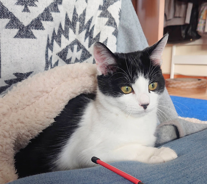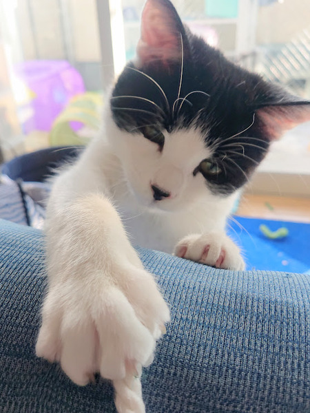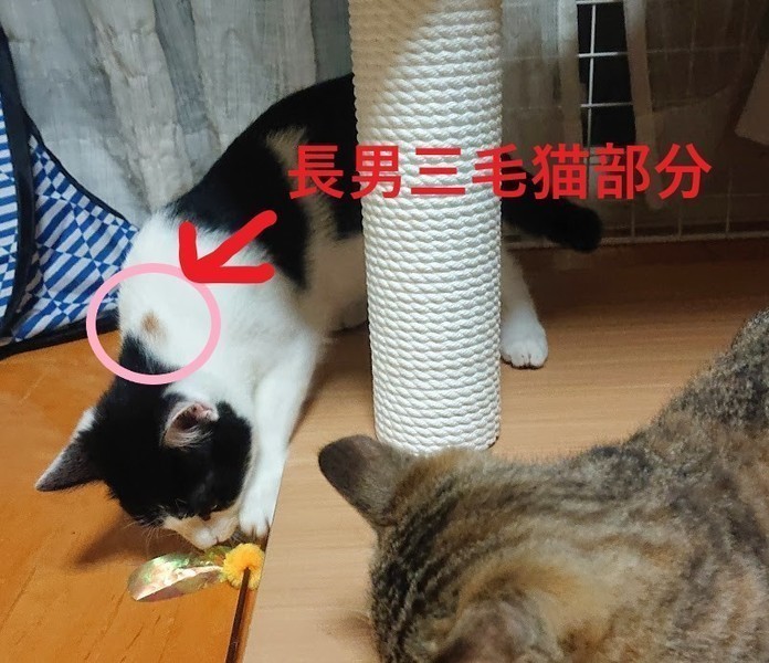| 特徴(性格など) | 長男(仮) 推定5月生まれ♂ 白黒はちわれ…と見せかけてなんと三毛猫ボーイです! 背中と尻尾の付け根に茶色のポイントが入ってます。 ギリギリ三毛といった感じです。 一番人慣れしていませんでしたが、なでなで出来るようになりました! スリスリゴロゴロしてくれます! 場所が変わってしまうと最初は緊張して隠れると思います。 ゆっくり見守ってくださる方が望ましいです。 兄妹と一緒に育ったので他の猫に対しては威嚇したりしません。 構って欲しくて突撃していく可能性がありますので、高齢・神経質な先住さんが居る場合は 慎重にご検討ください。 |