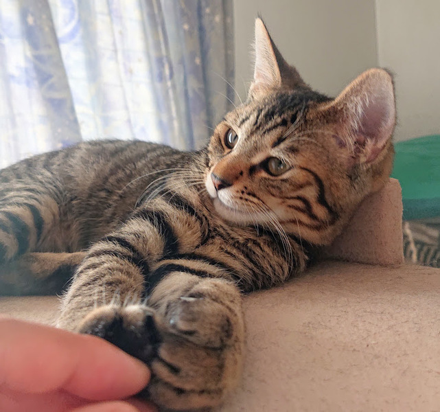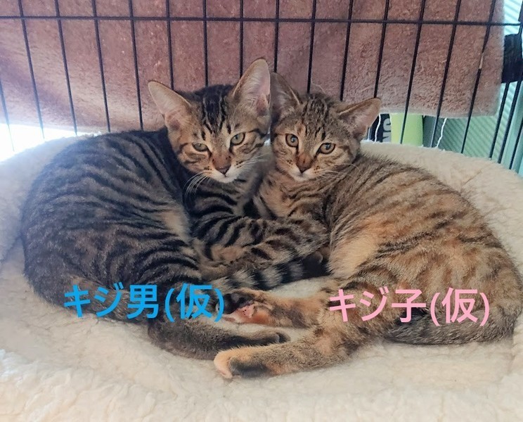 | 特徴(性格など) | キジ男(仮) 推定5月生まれ♂ 正統派イケメンのきじとらボーイです。 イケメンです。まっすぐ尻尾。 何故か4兄弟の中で最初から人慣れしておりナデナデ抱っこ出来ます。 キジ子(仮)と行動しています。 ご飯とじゃらし大好き。 |