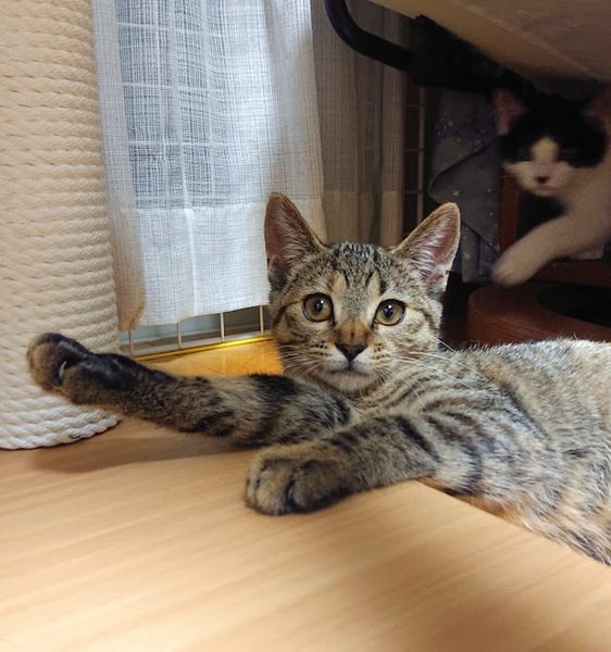 | 特徴(性格など) | キジ子(仮) ※人慣れ修業中※ 推定5月生まれ♀ 兄弟の中で唯一の女子です。 優しいカラーのむぎわらです。垂れ目気味です。 尻尾が半分くらいの長さで先がカギです。 だいぶ人慣れしてきました。なでなで出来ます! 兄弟のキジ男と一緒に行動しています。 兄弟に対しては強めで全員と取っ組み合ってます。 |