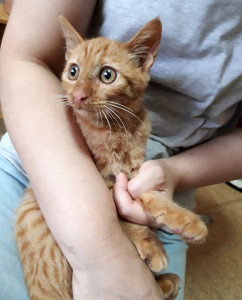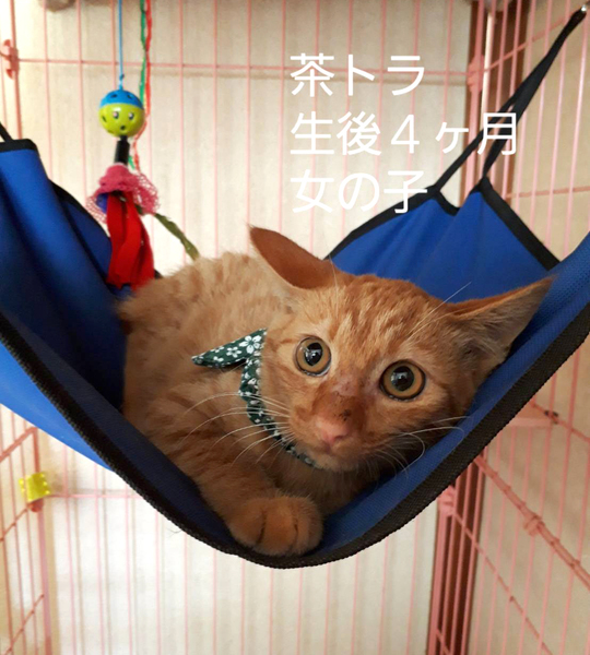 | 特徴(性格など) | 駆虫・ワクチン1回接種済み エイズ・白血病共に陰性 女の子の茶トラはとても珍しいです!(茶トラはほとんどがオス) 人に慣らし中です♪ |