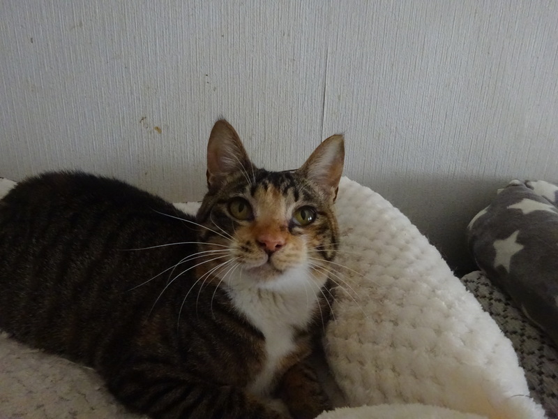| 特徴(性格など) | 仮名: ななみちゃん(メス) 毛色: 三毛キジ 性格: 威嚇なく、攻撃性もなく、人には馴れていて、ケージから出ると真っ先に膝の上に乗ったり抱っこを要求したりする甘えん坊です。小さい時には生きるか死ぬか位の酷い風邪を引いていて、目は助からないかと思った位ですが、運よく助かりました。少し後遺症はあるようで、涙目になったり鼻水が出たりしますが、病院に行っても風邪ではないようです。 今は、元気なので、他の猫と仲良く遊んでいます。 ケージには慣れていますので、飼い主さんの安心の為にケージをお使いになる事をお勧めします。 ノミ取り済 検便済 駆虫済 3種混合ワクチン済 避妊手術済 猫エイズ・白血病ウィルス検査は陰性です |