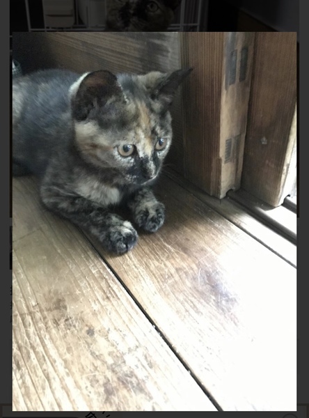 | 特徴(性格など) | 【性格・特徴】 少し臆病でビビリな女の子ですが、 遊ぶ事は大好きです。 サビねこちゃんは クールな見た目と違って 飼い主さんにベタベタだったりして 賢いねこちゃんです♪ 【健康状態】 シャンプーは 済んでいます。 猫回虫がいて 薬を飲んで駆除しました。 カリカリフードも良く食べて 元気です。 ノミダニも駆除済です。 ・ワクチン1回接種済み ・抗体検査/ 陰性 |