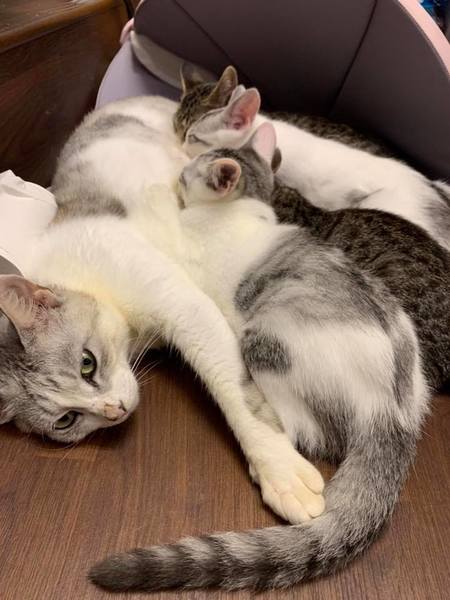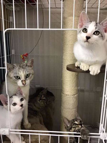 | 特徴(性格など) | お母さんと同じ柄の2匹の仔猫は男の子、キジトラの少し小柄な子が女の子でもう1匹は男の子です。 恐らく5月生まれと思われ、大きい子たちはそろそろ2kgになりますが、今も眠くなるとお母さんのお腹をモミモミし、おっぱいを吸いながら眠ります。 仔猫はみんなで遊んでいますが、やはり毛色の同じ兄弟たち同士の方が仲良しです。 保護するのが生後2ヶ月を過ぎていたため、仔猫たちは抱っこや撫で撫でをされるのをまだ嫌がりますが、自分からは寄ってきます。 ここまで大家族で育つのも大変珍しいケースですが、そのため家族同士の絆が強いように感じます。 ですので、出来るだけ毛色の同じ子たちは同じお家に、と考えています。 お母さんはものすごく人懐こく、抱き上げるとゴロゴロいい、膝の上から降りようとしません。 大変健康です。エイズ白血病検査陰性、ワクチン接種済み、駆虫済み |