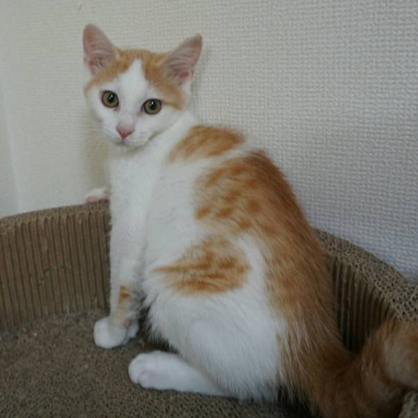 | 特徴(性格など) | 推定生年月日:2020年5月12日 毛色:茶白(おかっぱ風) しっぽ:すらっとまっすぐ 一度見ると忘れられない‥なぜかすごく気になる(気がする)お顔?模様?のラト少年。 よく遊び、猫じゃらしも大好きですが、ちょっぴり人見知りも。 とはいえ、慣れればゴロゴロ♪の甘えん坊さんに(´艸`*) 人見知りする子は、家族だけにベッタリの可愛い子になりますよ♪ 運動神経は良いのに、ちょっとどんくさい一面も。 どちらかというとやんちゃよりのんびりやさん。 そんなところも可愛い男の子です。 ☆不妊去勢手術済 ☆ワクチン2回済 ☆ノミダニ取り済 ☆駆虫済 ☆マイクロチップ挿入済 ☆トイレしつけ済 ☆ウイルス検査 エイズ 陰性、白血病 陰性 |