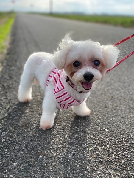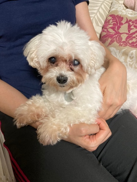 | 特徴(性格など) | 性格・特徴 【性格】 天真爛漫な女の子です♡ 人見知りがなく誰とでもすぐに仲良くなれます。 無駄吠えすることもなく、チョコチョコ歩きの癒し系の女の子です。 抱っこにはまだ慣れていなくて固まってしまうので、少しずつ抱っこの練習をしています。 左目はボンヤリ程度なため、背後や横から突然触れられると驚いてしまいます。 起きているときに、見える範囲(右前側)からそっとなでなでしてもらうと安心します。 【食事】 ドライフードを1日2回、30gずつほぼ残さずに食べています。 只今ダイエット中のため、ドライフードの量を少なめにして調節しています。 フードは療法食が必要な場合以外は、シュプレモでお願いします。 【トイレ】 トイレシートの認識はあり、ほとんど成功していますが、引き続き、トイレトレーニングをお願いします。 【お散歩】 まだお外に出ることに慣れていないので、歩くことを楽しむより風や草や道路の匂いに興味津々です。 足の筋肉をつけるためにも、少しずつ歩く練習をしています。 迷子札は、首輪に刻印式のIDカラーで装着して頂く事と、ショルダー型ダブルリード使用のお約束をお願いします。 【お留守番】 ケージでお利口に過ごすことができます。 健康状態 ※ 医療に関しまして、当会では、里親様にお繋ぎするまでに、検査や手術、治療等のレスキュー団体で出来る最大限の努力の上で譲渡活動を行っております。ご理解頂ける方のみご応募ください。 名前 すいかちゃん 犬種 マルチーズ 年齢 8 歳くらい 性別 女の子 体温 38.6度 体重 4.86kg(適正体重4.5kg) 口腔 歯石除去済み 抜歯1本 皮膚 異常なし 眼 片目 白濁で視力ボンヤリ程度 耳 炎症あり→投薬による治療中 鼻 異常なし 膝蓋骨脱臼 左右G1 鼠径ヘルニア 異常なし 臍ヘルニア 整復済み 乳腺腫瘍 異常なし 心雑音 異常なし 検便検査 異常なし 血液検査 異常なし フィラリア検査 済み 陰性(近日投薬予定) レントゲン 異常なし 避妊手術 済み 心電図 異常なし ワクチン 済み(2020/8/3) フロントライン 済み ※特記事項 手術での麻酔中に心拍数が低くなりました。手術における麻酔には十分ご注意ください。 左耳付け根部に水疱があったため、切除しましたが、再発の可能性があります。 背中辺りのイボ(脂肪腫)ありましたが、無事切除済みです。 |