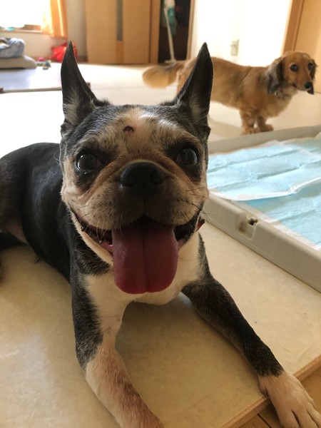 | 特徴(性格など) | □特徴 ・名前 笑(エミー・グランマ)(仮名) ・ボストンテリア ・年齢 12歳 ・体重 9.66キロ ・フィラリア 陰性 ・不妊去勢手術 済 ・混合ワクチン 済 ・狂犬病注射 済 ・便検査 済 今後の医療措置 ・マイクロチップ装着 □性格 年齢は12歳ですが年齢を感じさせない、まだまだ元気な女の子です。 ボストンテリアらしく温厚で誰にでもフレンドリーです。 スイッチが入ると、おもちゃに夢中になり一人でとても楽しそうに遊びます。 他犬に対しても問題なく生活する事が出来ます。 お家では温厚な笑ちゃんですが、お散歩はなかなか元気よく力強く歩きます。 10キロと体重もありますのでそこそこ引きも強いです。 ブログでも紹介しておりますが、お散歩中草の上でゴロゴロしたりと笑いをとって楽しませてくれてます。 トイレは基本外でしますので1日2回のお散歩の他、1~2回トイレの為お外に出ます。 吠える事もほぼなく、手もかからない笑ちゃんに癒されています。 甘えん坊で寂しがり屋の笑ちゃん。飼い主死亡により寂しい思いをしてます。 残りの犬生、沢山の愛情をもって大切に可愛がってくださるご家族様との出会いをお待ちしております。 預かりブログがありますので、保護犬の日常をご覧になって下さい。 (8月13日より笑ちゃんのブログです) http://ameblo.jp/yoshi935/ □譲渡条件 預かりブログ・譲渡条件を必ずお読みの上、応募アンケートフォームよりご応募ください。 譲渡条件 http://aguri.nomaki.jp/z.html 犬の応募フォーム http://my.formman.com/form/pc/HSiHA19xGo1sxlwu/ ※次に該当する方への譲渡は安全管理上譲渡は難しいのでご了承下さい 未成年者、学生、一人暮らしの方(同居・同棲含む) お留守番の多いご家庭 完全室内フリー飼育をしていただける方 『アグリドックレスキュー』HP http://aguri.nomaki.jp/index.html ■応募方法 ご希望の方は、当会のHPに記載してある譲渡条件等をよくお読みになって 「犬の里親募集アンケート」からの応募をお願い致します。 質問などもアンケートに記入欄がありますのでそちらよりお願い致します。 お返事には1週間程度のお時間がかかる場合があります。 どうぞご理解ください。 ※先着順ではありません。 犬の性格・年齢・病気等を考慮し、多方面から検討して新しいご家庭を選ばさせていただいています。 |