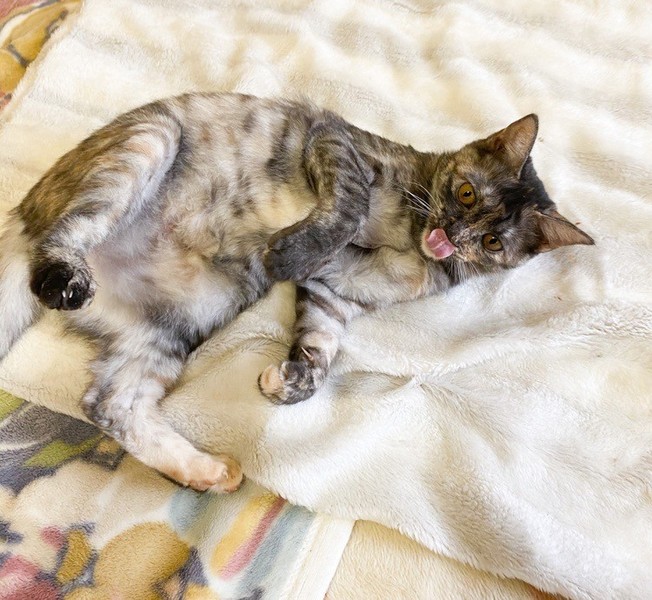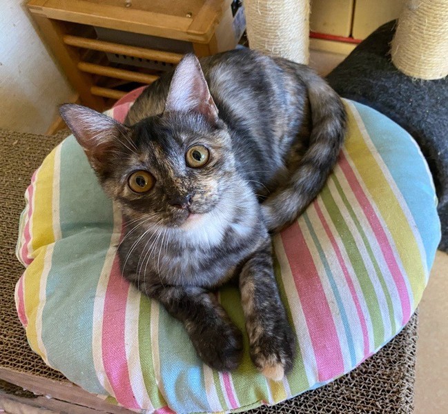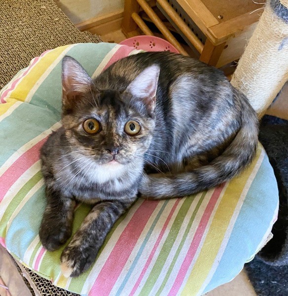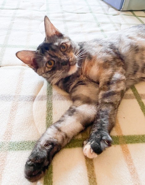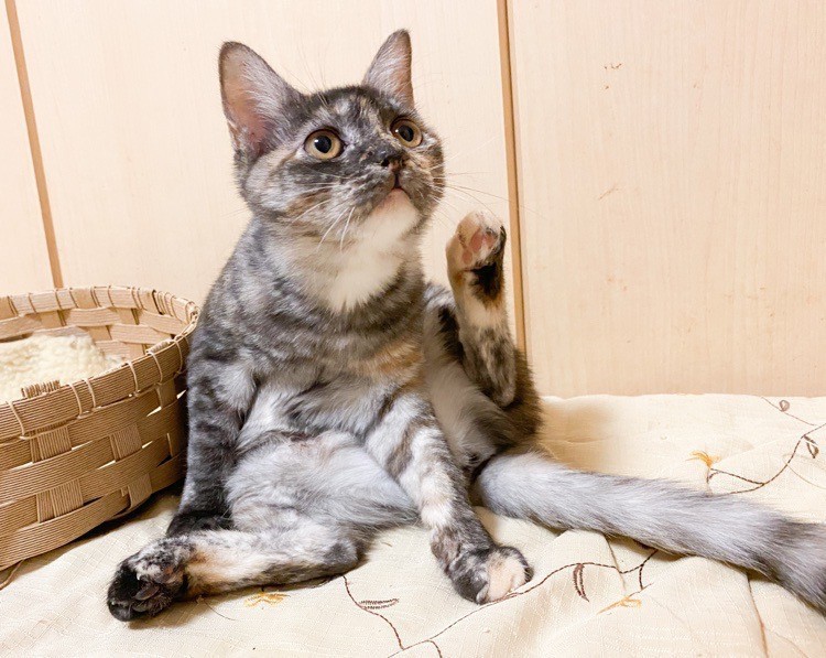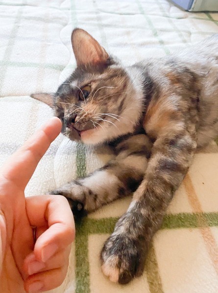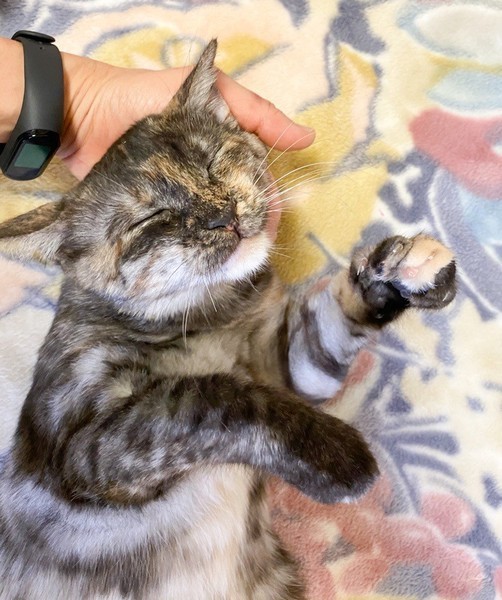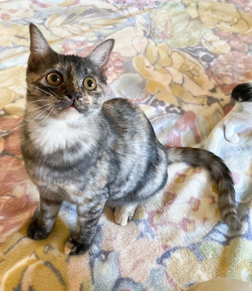 | 特徴(性格など) | 物静かなサビ「不二子」ちゃん♡ とっても甘えっコさんで、抱っこも玩具で遊んで貰うのも大好き♪ 現在、ドライフードを置き餌として栄養補給、水分補給のため一日2回パウチなど与えています。 <推定誕生日:5月末> |