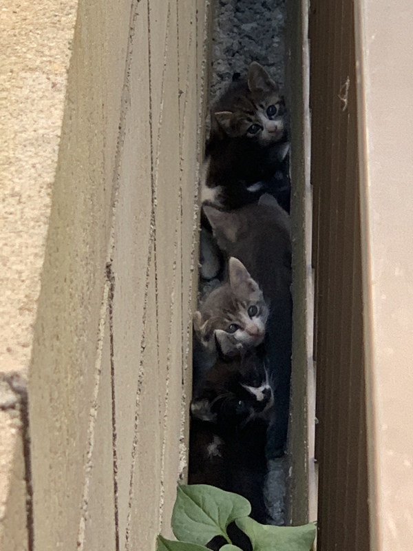 | 特徴(性格など) | 黒×白ハチワレ2匹 キジトラハチワレ1匹 白×灰1匹 |