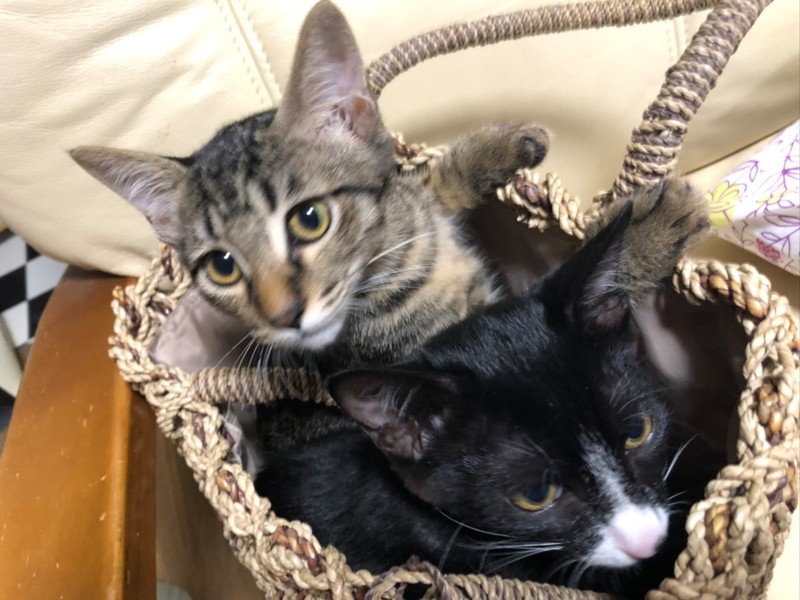 | 特徴(性格など) | 白黒とキジトラの男の子の兄弟です。 人馴れもしてとても可愛くなりました。いつも仲良く遊んでおります。 食欲も良く元気一杯です。 白黒くんはお鼻に点がありとても愛嬌があり抜群に可愛いです。 また白い靴下もはいてます。 まだ小さく遊び盛りで甘えたい時期ですので兄弟一緒に迎えて下さる方を希望致します。 どうかお気軽に見に来て下さい。 |
