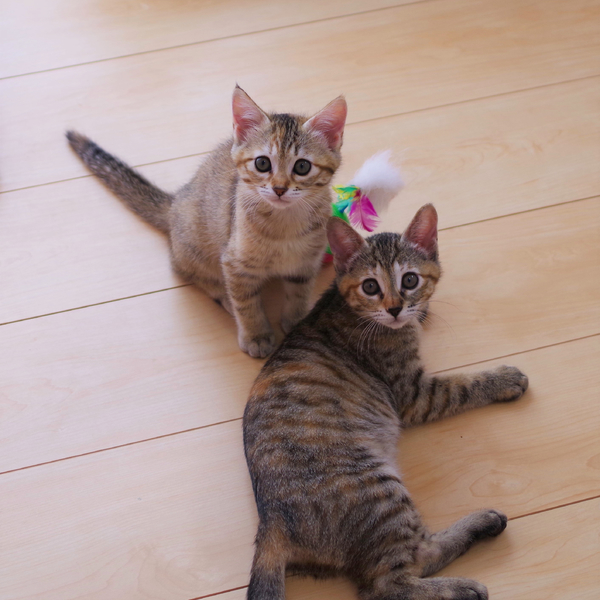 | 特徴(性格など) | ★健康状態★ 毎日元気いっぱいに遊び ごはんもたくさん食べて健康状態はとても良好です。 ☆3種ワクチン1回接種済み ☆内外駆虫済み(便検査異常なし) ☆猫エイズ、猫白血病の血液検査 ウーロンちゃんは未実施ですが 代表で検査したプアールちゃんは陰性です。 現在の2ヶ月半ほど (誕生日は6月1日くらいです。) ★特徴★ しましま姉妹 ☆ウーロンちゃん☆ 生後2ヶ月半の女の子です。 ❁性格❁ とってもおっとり おしとやかなウーロンちゃん。 なでなでやお膝の上が大好きで 近くにいるだけでゴロゴロが止まらない甘えん坊です。 お気に入りの場所でかわいく毛づくろいをしたり お姉ちゃんのプアールちゃんに比べて のんびり落ち着いた性格です。 でも、遊びスイッチが入ると 元気いっぱい追いかけっこをしたり おもちゃや爪とぎで プアールちゃんと姉妹で仲良く遊んでいます。 一緒にいると ほっこり癒されるような 優しい雰囲気の女の子です。 ❁チャームポイント❁ きりっとアイラインの入った大きなお目目に 美しいオレンジのしましまボディです。 スナネコの赤ちゃんのような とってもかわいいウーロンちゃんです。 ❁その他❁ 通院や爪切りブラッシング、おトイレなど 上手にできます。 とても甘えん坊でおっとりした性格でなので 猫ちゃんと暮らすのが初めての方 小さなお子さまがいらっしゃるお家でも 仲良く暮らせる猫ちゃんだと思います。 ❁仲良し姉妹で一緒に❁ お姉ちゃんのプアールちゃんと いつも一緒、とても仲良しです。 子猫同士で一緒に成長することで 遊びながらいろいろなことを学びます。 2匹で一緒に迎えていただけるお家とご縁がありましたらうれしいです。 ❁インスタグラムをご覧下さい❁ ウーロンちゃんプアールちゃんたちの 毎日の様子をインスタグラムのストーリーに 投稿しています。 ぜひかわいいしましま姉妹の動画をご覧ください! @fuuchannel プロフィールのURLからもアクセスできます。 ❁写真の補足❁ 6枚目…いつも一緒のプアールちゃんと 7、8枚目…とっても美人にゃ仲良し姉妹でしゅ♡ |