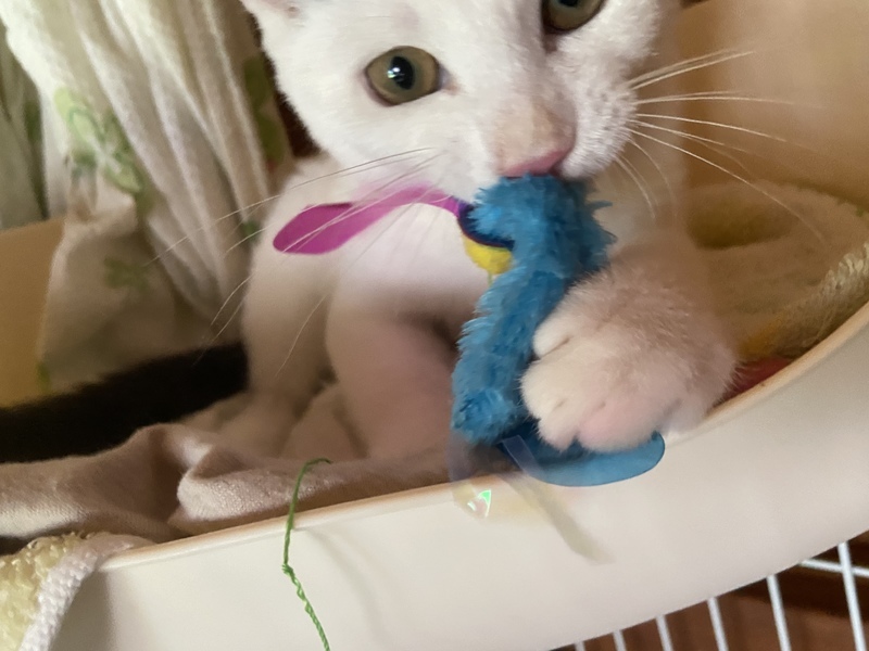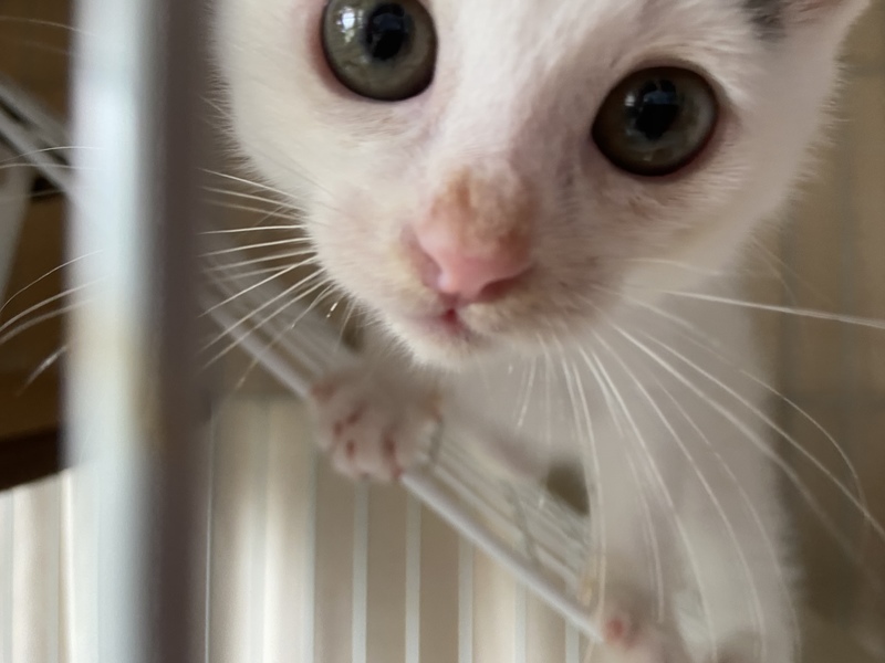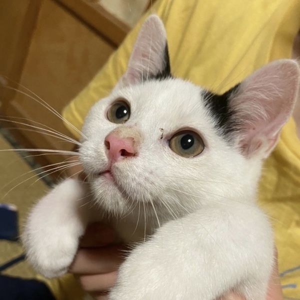 | 特徴(性格など) | 生後約3ヶ月の男の子 ベースは白色、黒の模様(額の黒模様としっぽの黒色がチャームポイント) しっぽは長め 抱っこもできます(人馴れは十分) 遊ぶの大好き!毎回運動会です! 家猫2匹とも仲良しです |