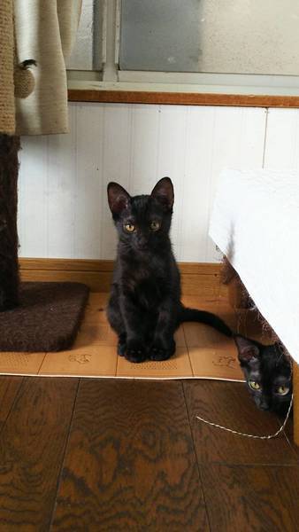 | 里親募集する理由 | 我が家の近くに住む母猫が咥えて連れてきたので保護しております。 キレイな毛並のクロ猫姉妹です。 優しく愛情たっぷりに飼ってくださる里親さんを探しております。 よろしくお願いいたします。 |