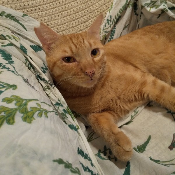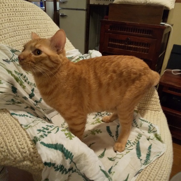 | 特徴(性格など) | 仮名:あお 毛色:茶トラ。鼻が茶色のドット模様で、目のふちや唇にも茶色い点々があります。 瞳の色:薄い茶色 尻尾:長くてまっすぐ 性格・特徴:鼻が高くシュッとしたイケメンで、スタイル抜群の細マッチョです。 うちに来た時点でなでなででき、1週間後にはおヒザ抱っこができるようになったスリゴロくん。 鳥のさえずりや小動物のようなとてもかわいい声が特徴です。 目が会った時に呼ぶと「うにゃ?」と言って駆け寄ってきます。 保護されて初めて人に甘える喜びに目覚めたため、生後2、3か月の子猫のようなじゃれじゃれ期に入っていて、たまに甘噛みが出ます。 ほかの猫とも仲良くできますが、愛情表現が激しく、ギュッと抱きしめたかと思えばいきなりキックしたりと、やはりじゃれじゃれ期のような行動をとるため、先住猫ちゃんがいるお宅ではない方がいいと思います。 仲がいい子と2匹で迎えていただけるとありがたいです。 これまで辛い思いをしてきた分、愛情たっぷりに育ててください。 システムトイレのしつけ済み。 右耳に桜カットあり。 |
