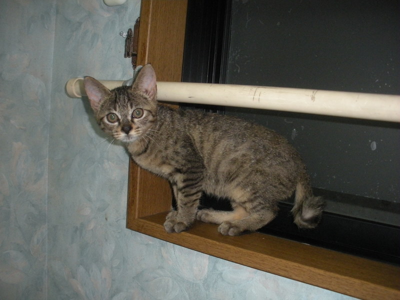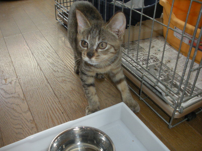 | 特徴(性格など) | 茶色っぽいキジトラ 尻尾は鍵しっぽです 抱っこするとゴロゴロいいますが、びびりです。 |