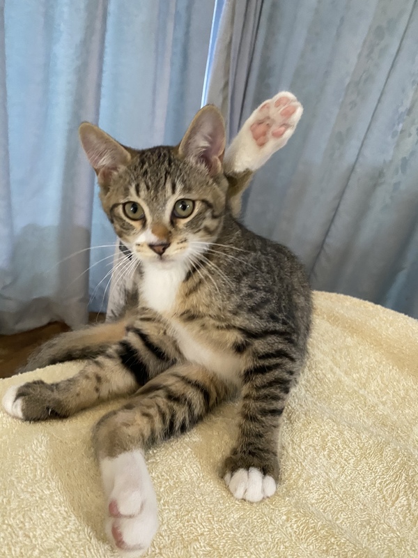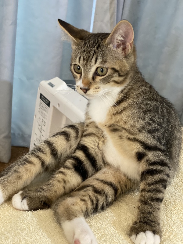 | 特徴(性格など) | 甘えん坊なキジシロの男の子です! 頭や背中、とにかく撫でられることが大好きで甘えん坊な男の子です。 くりくりのお目目も可愛い子猫です! |