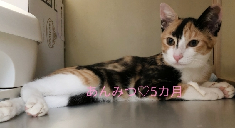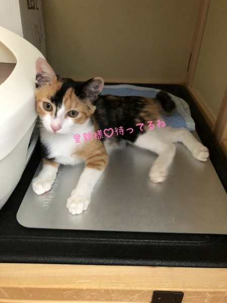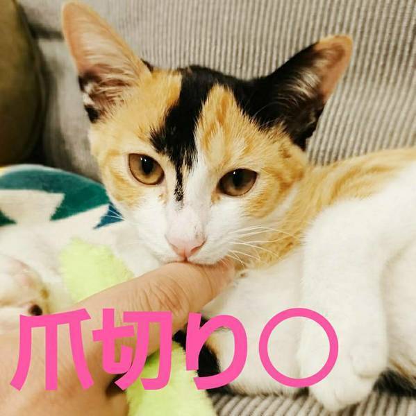 | 特徴(性格など) | 頭と腕に茶トラ模様 頭~背中にかけてインパクトある 黒い模様のハッキリとした三毛猫 シッポはクルリン♪ 個性豊かな派手なルックスなので お部屋の中で探しまわる事がありません。 性格 保護初日は隅っこにいましたが 翌日にはリラックスした様子が見られ 抱っこや膝乗せ爪切りもさせてくれる ようになりました。 お外にいた時も現在も 一人で居る時間が長い為 甘えっ子ちゃんです♡ |