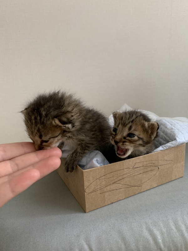 | 里親募集する理由 | マンション横の植え込みで大雨の中1日鳴いていたので保護しました。 私がお世話出来たらいいのですが若い先住猫2匹と小さい子供がいるため、大切にしてくださる方とのご縁を探すことにしました。 とても小さいですが、よく鳴きミルクも飲んで元気にしてくれます。 |