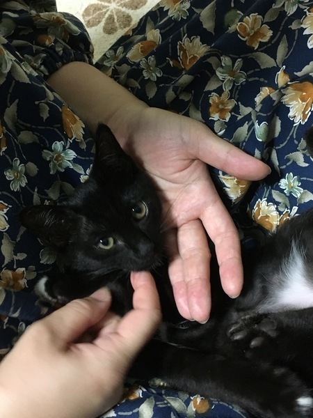 | 特徴(性格など) | 仮 名:くろまめ 保護日:2020年7月 性 別:オス 毛 色:黒(胸元と足先、お腹に白毛) 誕生日:2020年5月(推定) 性 格:かなりあかんたれです。でも、慣れたら甘えたい!遊びたい!元気な男の子!日々の様子はInstagram&Facebookにアップしています。「しっぽのえんむすび」で検索してくださいね♬ 治療歴等:駆虫済、ワクチン8/15・9/12接種済、FIV・Fel V陰性 |