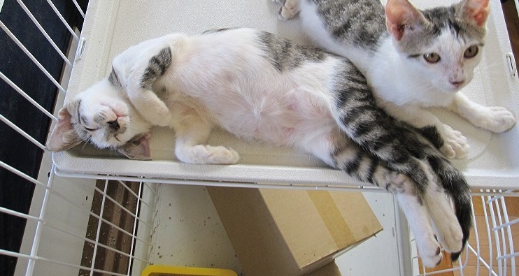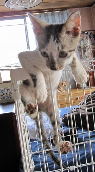 | 特徴(性格など) | 白×キジのめっちゃ甘えん坊!生き残ったもう1匹の兄弟と、毎日元気に遊んでいます。ノミダニは駆虫済。エイズ白血病の血液検査はマイナス。初回ワクチン接種後お渡ししたいです。 | ||
