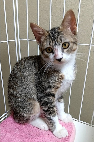 | 特徴(性格など) | キジ白とサビ猫の女の子です。 どちらも大人しくて、ちょっとビビリちゃんです。 人慣れ修行中です! ワクチン1回目済み・駆虫済み。 ウィルス検査マイナスでした。 |