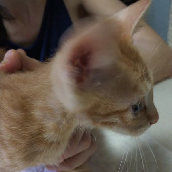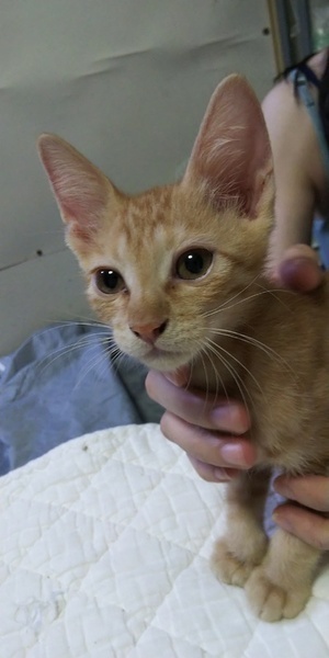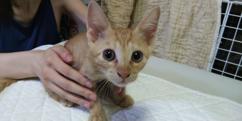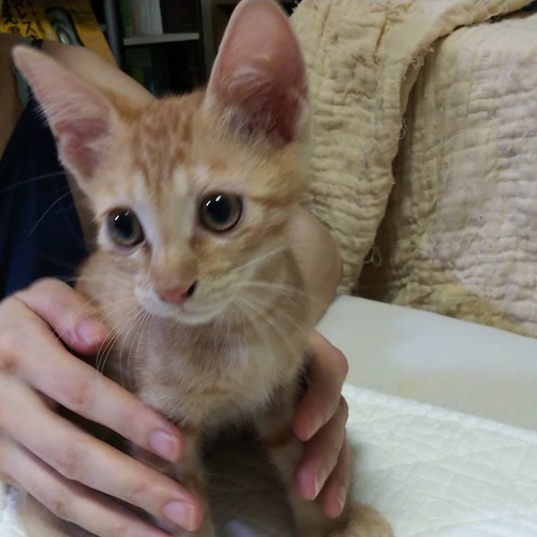 | 特徴(性格など) | 茶トラの男の子です。 華奢な体つきですが、活発な食いしん坊さんです。 性格は穏やかで人懐こいです。 |