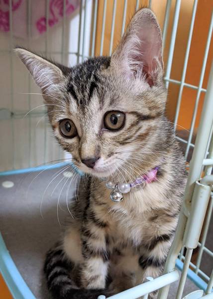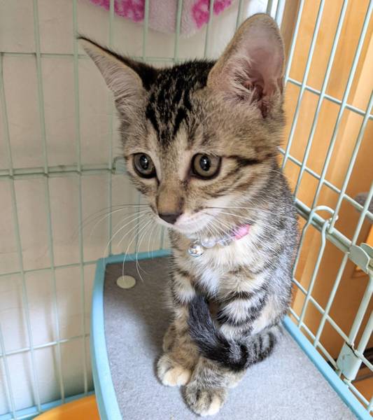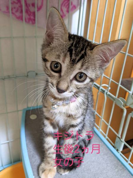 | 特徴(性格など) | 駆虫・ワクチン1回接種済み エイズ・白血病は、兄妹の一方が検査して陰性でした。 キジトラ(女の子)です。 |