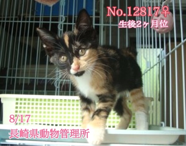 | 里親募集する理由 | 生後2か月位の可愛いミケちゃん仔猫(女の子)が民家に捨てられていたと住民に持ち込まれて長崎県動物管理所へ収容されました。 親猫と離れひとりぼっち、突然連れてこられてどんなに寂しく心細いか。。 1日も早く愛情に包まれながら温かい家庭の中で幸せに育ってほしいと願い里親様の募集をさせて頂きます⭐︎⭐︎ 素敵なご縁を待っています! どうぞ宜しくお願い申し上げますm(_ _)m ※募集内容を熟読し、必ずご家族とよく相談をされた上、ご家族全員の賛同を得られてからのお問い合わせ をお願い申し上げます。 ☆完全室内飼育にて家族の一員として迎えて下さる方、「引き渡し方法」にあります【アンケート】にご回答と共にお問い合わせいただけますようお願い申し上げますm(_ _)m 優しい職員さん達がお忙しい中、きっと幸せになれます様にと毎日撫でたり抱っこしたりと触れ合い、懸命にお世話してくださっています。とても人懐こく擦り寄って来て抱っこすると嬉しそうに喉をゴロゴロ鳴らしています(^^) 仔猫用(成長期用)ドライフードを食べる事ができ、猫砂での排泄も出来ます。 まだまだ幼く甘えたい盛りのおちびちゃんです。温かく迎えて下さるご家族とのご縁を待っていますm(_ _)m きっとすんなり新しい家庭に馴染んでいけると思います♡ ⭐️当初は2段か3段のケージ飼いから馴らす完全室内飼育で、譲渡後速やかに病院受診、健康診断、ワクチン、生後半年頃を目処に避妊手術をする事が可能な、なるべくお留守番の少ない沢山優しく触れ合っていただけるご家庭。 ⭐️新しい環境に慣れるまで、もしかしたらトイレの失敗などあるかもしれませんが覚悟と根気・理解で受け入れて下さる方m(_ _)m ※混合ワクチン、ウイルス検査実績はありません。エイズ、白血病陽性の可能性も0では無くあり得ることとなります(>_<) 以上の点を踏まえ、この子の置かれている状況、寂しくて不安もあるであろう心をご理解のうえ、全て受け入れ寄り添っていただけるご家庭で終生可愛がっていただきたいと祈っております。 収容された全ての子達は身勝手な人間による被害者であり、何も悪くありません( ; ; ) 家族の一員として生涯大切にしてくださる優しいご家庭とのご縁が結ばれ幸せになれます様にm(_ _)m 残念ながら長崎県は28年、29年度と殺処分数全国ワースト1位(30年度は3位)です。 ☆猫を飼養飼育していく為には日々、食費、医療費、トイレシート、猫砂以外にも経済的に費用がかかります。 時にはいたずらをして困らせる事もあるかもしれません。 年をとれば人間と同じ様に介護も必要になります。 可愛い可哀想というだけの安易なお気持ちでのご応募は猫にとっても幸せな事ではありません。深い愛情と責任を持ち終生完全室内飼育、生後半年頃を目処に確実に不妊手術をしていただける方 の、ご応募をお待ちしております 。 ⭐️ 県外、遠方の方でも譲渡の条件が合い、良縁に恵まれましたら引き出しや空輸、搬送など出来る限りの範囲内になりますがボランティアがお手伝いさせて頂きます。ご相談下さいませ。 搬送時にはエアトラベルキャリーケースかケージが必要になります。 搬送交通費、キャリー、ケージは里親様ご負担となります。 ☆尚、キャリー、ケージは無料貸し出しも可能でございます。 後日返送して頂きます。 運命の赤い糸♡良いご縁をお待ちしております(๑•ᴗ•๑)♡どうぞ宜しくお願い申し上げます! https://youtu.be/LTZvSkOQAOo |