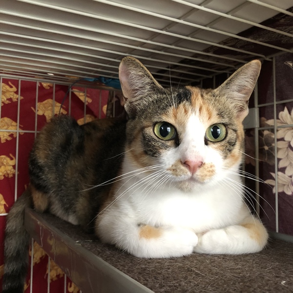 | 特徴(性格など) | 美しくて艶々の三毛猫です。 そこにいるだけで華やかなオーラがあります。 天然で素直で甘えんぼ うるるん、くるるんとよく鳴きます。 まだ若いので、子猫と離すと、猫じゃらしで遊びたがります。 人を噛んだり爪を立てすぎることもなく とても優しい女の子です。 |