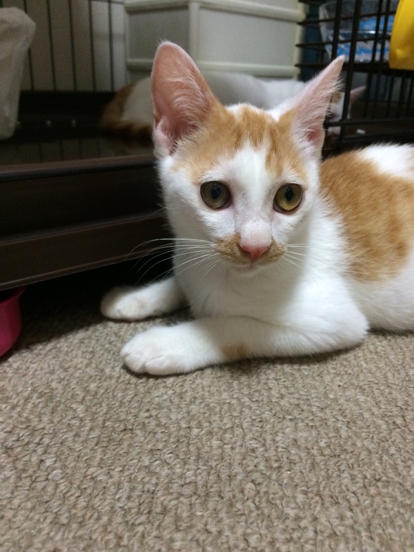 | 特徴(性格など) | 茶白の甘えん坊の男のコです。 初めはビビリで兄妹猫とずっとくっついていて、触らせてくれませんでしたが、慣れて来たらスリスリゴロゴロとっても甘えん坊です^_^ |