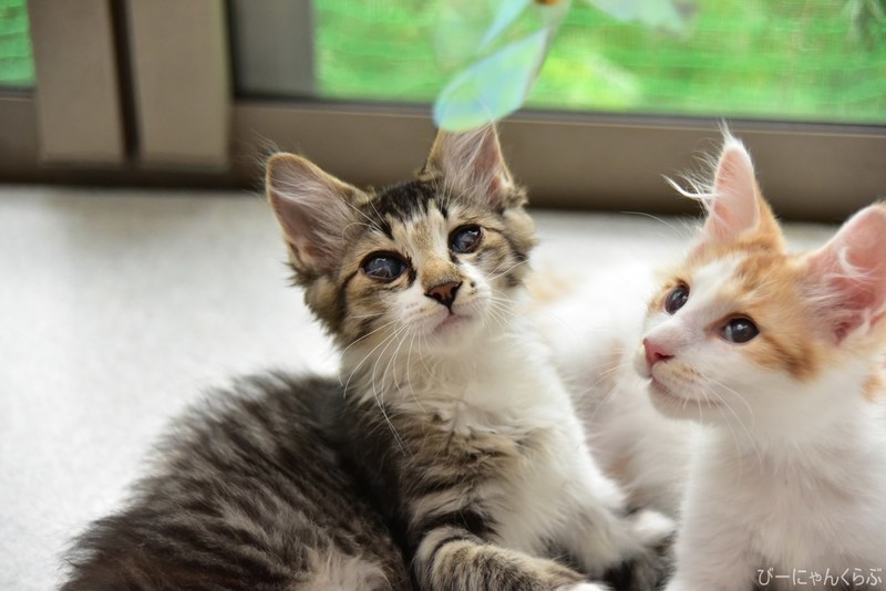 | 里親募集する理由 | 6/20、部活帰りの中学生が、うずくまって動かない衰弱した子猫2匹を発見・保護しました。 保護時、推定生後1カ月半、体重、なっちゃん330g、そうちゃん220g。 ふたりとも栄養失調かつ目が重篤な状態でしたが、1カ月半の入院治療により回復、現在は全く支障なく楽しく走り回っています。 目に瞬膜の癒着と角膜の濁りの後遺症がありますが、生活には支障ありません。点眼治療も終了しております。 理解ある里親様を探しております。 【8/31追記】 なっちゃんとそうちゃんは、なっちゃんの目に後遺症があることもあり、兄妹ペアで家族に迎えて下さるお宅を優先したいと考えております。 ふたりを1カ月半ケアして育てて下さった「きびきのどうぶつ病院」様からも、「なっちゃんはそうちゃんを頼りにすることで、いろいろなことが出来るようになっているので、ペアで迎えて下さるおうちがいいですね」、とアドバイスをいただいておりますので、ふたりのことを考え、ペアでお迎えのご家族を第一優先とさせていただいております。 |