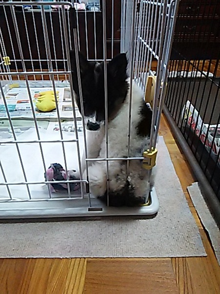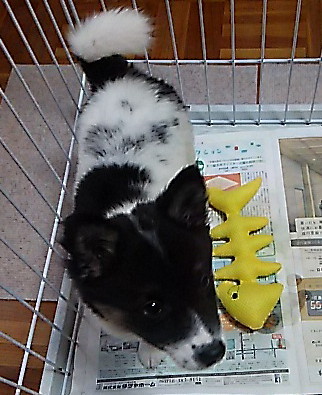 | 特徴(性格など) | 牛柄模様(白×黒)の雑種子犬です。 8/27現在体重2.5キロ、将来は中型の大きさ(11~16キロ位)になると思われます。 野犬の子でだいぶ慣れてきていますが、初めて会う方には少し緊張もあると思いますが、子犬ですので慣れるのは早いと思います。 食欲はあまりガツガツしていません。 |