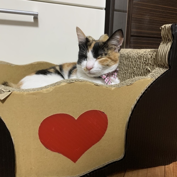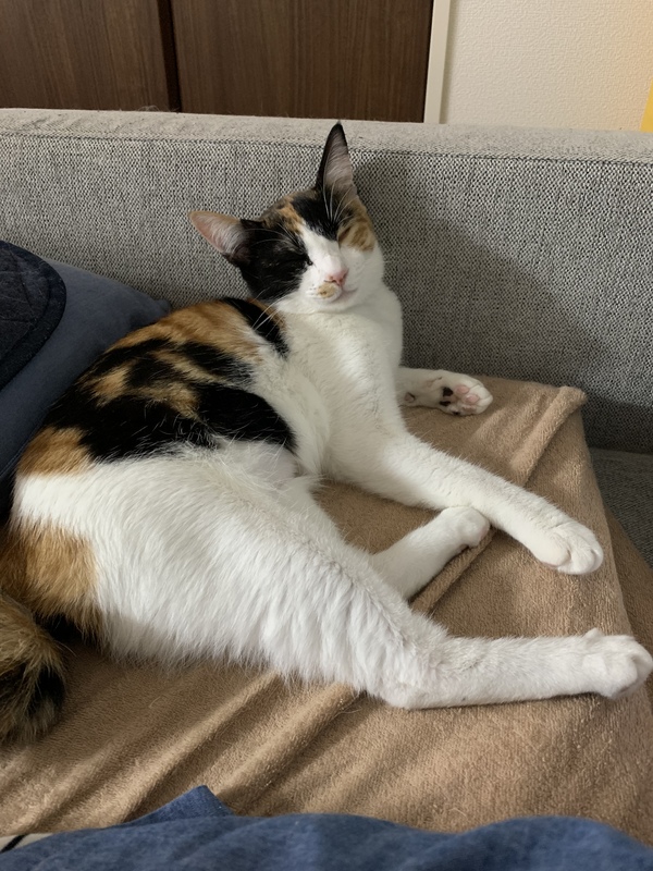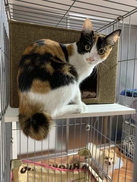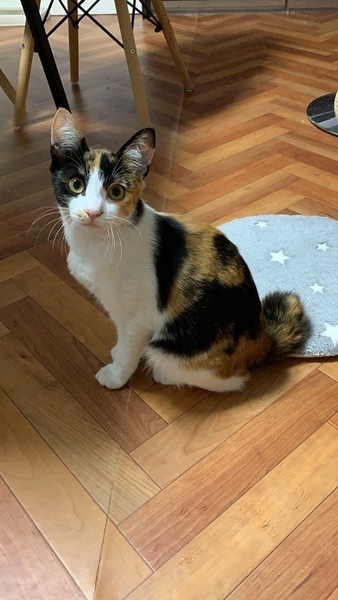 | 特徴(性格など) | 8/25保護しました。最初は緊張していましたが、日に日に慣れてきています。 ケージを開けてあげるとお気に入りの場所でずっと寝てます。一緒に保護してるつむぎくんが元気いっぱいなので、ちょっと遠慮してます。つむぎくんをケージに入れると保護主にすり寄って甘えたり、猫じゃらしで遊んでいます。 比較的落ち着いています(^^) カギしっぽです。 |