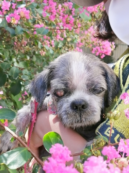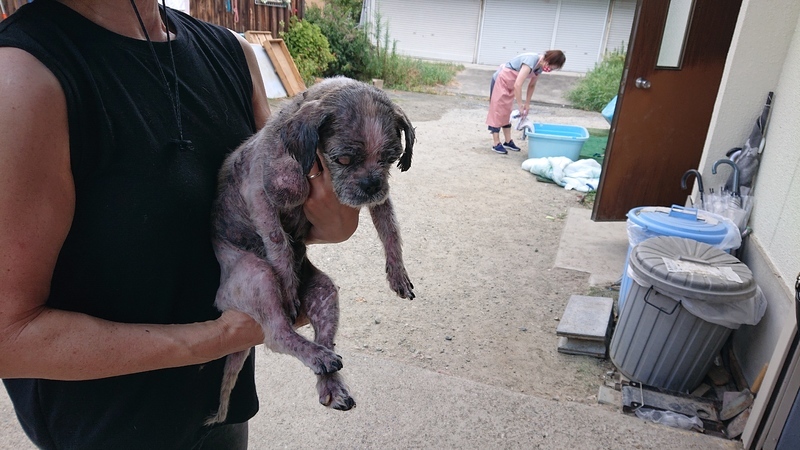 | 里親募集する理由 | クチャクチャで、捨てられていました。目も、傷を負っているようで見えていません。 不衛生による皮膚炎で、シャンプーで治療しています。 行政機関で保護されました。 |