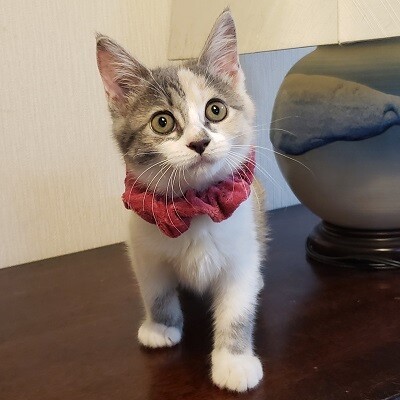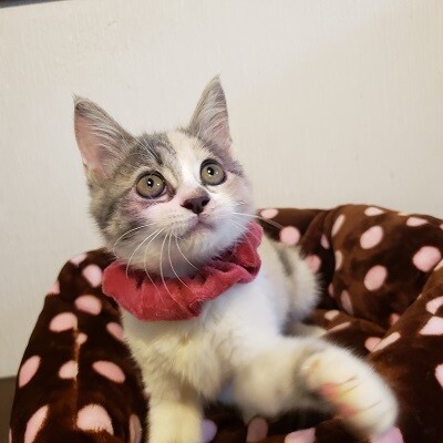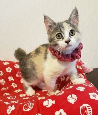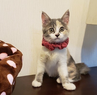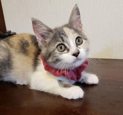 | 里親募集する理由 | 某公園で仔猫がカラスに襲われていたところを保護しました。他の3頭の仔たちは襲われて亡くなりました。 | ||