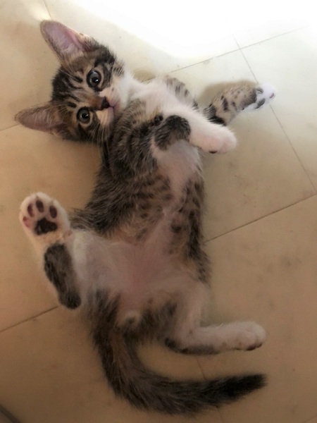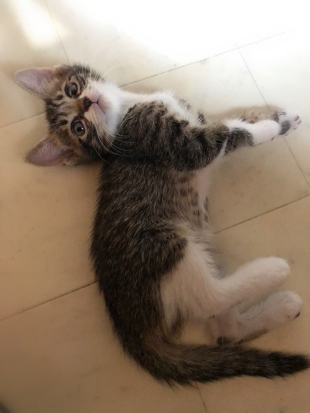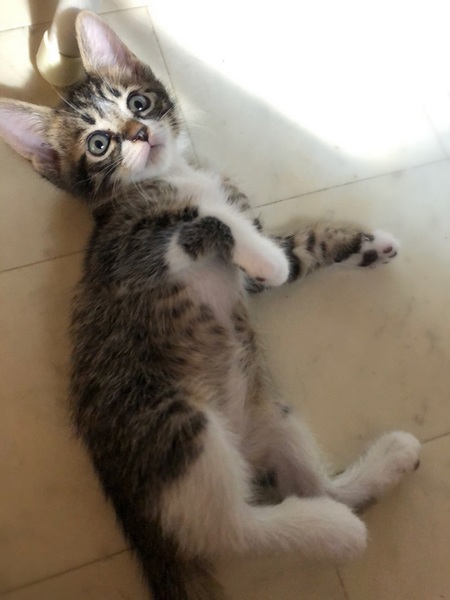 | 特徴(性格など) | 仮名、あさり くっきり白×縞々きじ白の男の子 初めての場所では少し緊張します。 甘えん坊で元気な性格。 気になる物があると、ぐんぐん進んで行きます。 目が合うとくるりと仰向けになり、ふみふみし始めます。 |