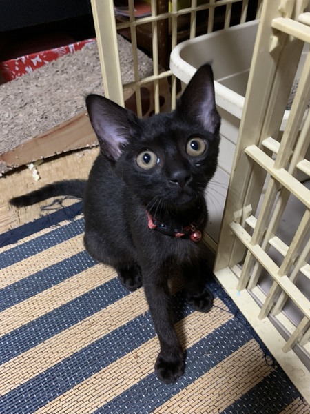 | 特徴(性格など) | 仮名・・令 黒猫 まず、目に飛び込むのが逆三角形のお顔! お耳が大きくクルクルお目目のちょっと宇宙人みたいな女の子です。 とても元気な女の子です |
