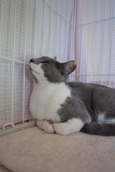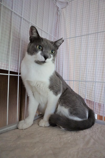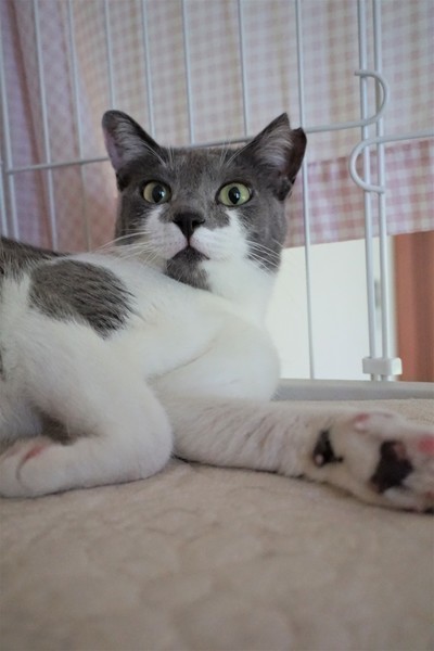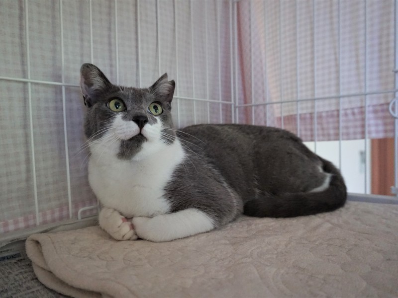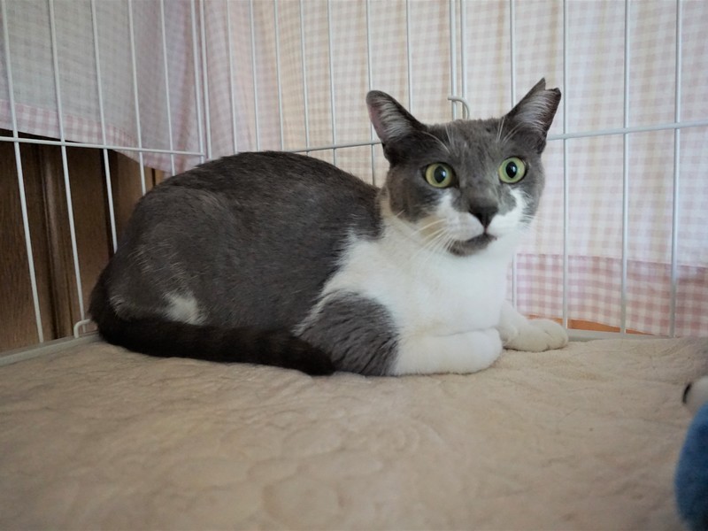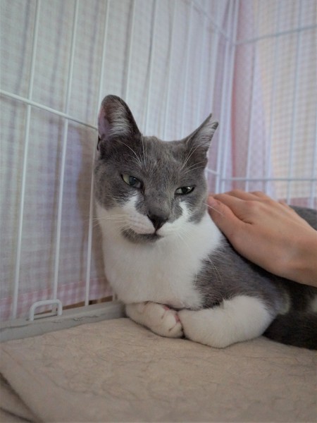| 特徴(性格など) | グレーと白のやわらかい毛並み、キャットウーマンのマスクのような、お顔の模様がチャームポイントの美人さんです。あやめの花言葉にあやかり、「いいお便り」が届くように仮の名をつけました。 現在は拙宅にて、基本的に3段ケージ内での生活をしています。 人見知りはありますが、撫でることは問題なくできます。噛む・引っ掻く・猫パンチといった攻撃行動はありません。 人がケージに近づくと、たいてい一番高いところの隅っこにちんまり固まっています。(追記:最近は固まることなく、顔を見ると「ごはんちょーだい」と鳴いて催促するようになりました。) 機嫌がよいときにはケージ内でゴロゴロ喉を鳴らしておなかを見せるなど、かわいらしい仕草で甘えます。 時々名前を呼んで話しかけると、「あーん」と愛らしい鳴き声でお返事をしてくれることもあります。毎日のごはんもよく食べ、おトイレもちゃんとできます。ウェットフードや「ちゅーる」が大好物です。 あやめちゃんはどちらかというと繊細でシャイで、いつ誰にでもべったり甘えるタイプではないと思いますが、控えめな性格の猫と暮らしたい方にはぴったりの子だと思います。 ただ、元野良猫であることや性格的な部分を考慮し、先住猫や、未就学児のお子さまがいない静かなご家庭が望ましいと考えています。 また、どの猫にも言えることですが、元野良猫はとくに脱走防止対策も必要になってきますので、そのような点においても、ご理解とご協力をいただける里親さまに託せたらと存じます。 あやめちゃんのペースにあわせ、家族の一員として、終生可愛がってくださる里親さまからのご連絡をお待ち申し上げております。 |