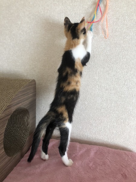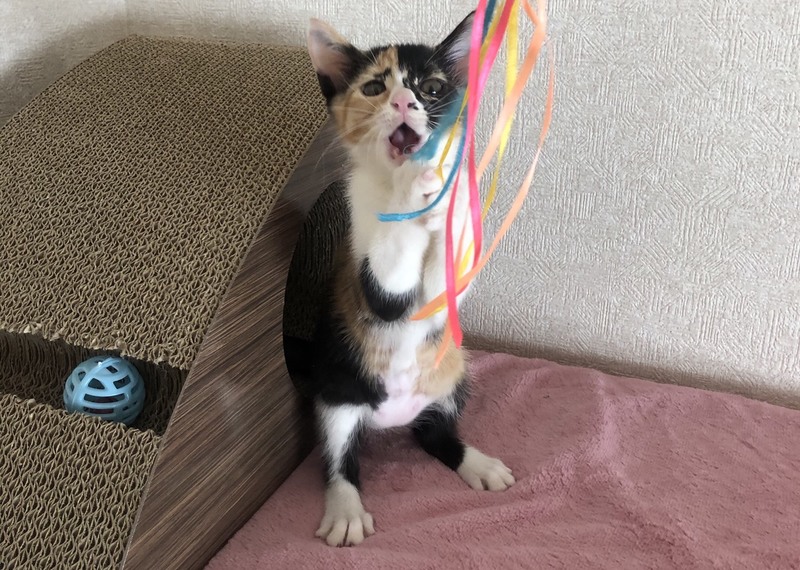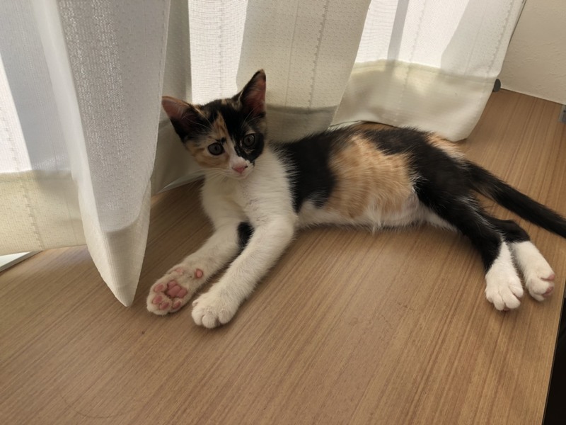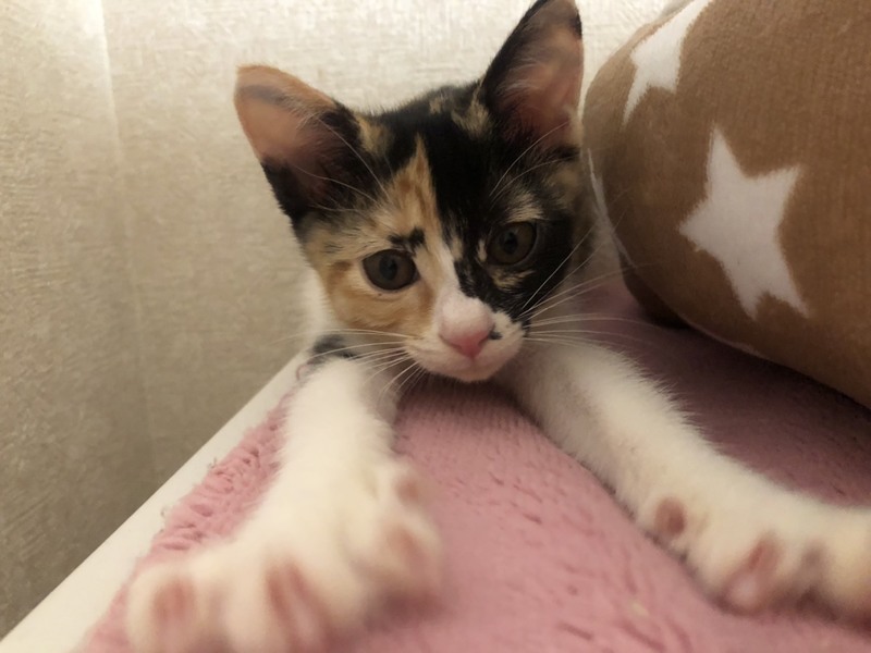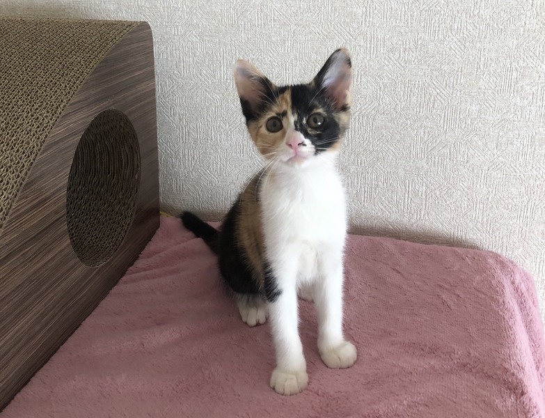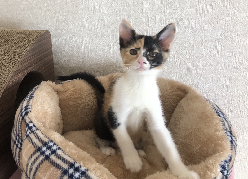 | 特徴(性格など) | 2020.6.16生まれ(推定) 毛色:三毛 三毛猫多めのペン兄妹♪ 長女タイプのしっかりものマッキー。 他の妹達よりも色濃い目の三毛ちゃんです。 マッキーの特徴はなんといっても右目上の眉模様!! 油性マッキーで書き足されたような困り眉が可愛すぎます♡ ぴーんとまっすぐ伸びた黒い尻尾の先っぽだけがうすーいクリーム! 尻尾を立ててあるく後ろ姿で、先っぽのワンポイントがフリフリ揺れて見えるところも可愛さUP♪ 性格は兄妹の中で一番穏やか。 優しすぎて、おもちゃを奪われてしまうこともしばしば。 基本的に兄妹一緒に過ごしていることが多いですが、抱っこが大好きで、人のお膝やお腹の上でゴロゴロ鳴らしながらお昼寝します。 お昼寝しながらふと見上げた時の困り顔がたまりません!! 兄妹ペアでの譲渡が希望ですが、しっかりものなので一人でのトライアルでも上手くいきそう 大きな家猫のしっぽへも果敢に挑み(シャーと怒られますが)コテンと転がって甘えて見せているので先住猫さんのお家でも大丈夫かな? 困り顔マッキーの可愛さに気づいてくれる方募集中です!!! |