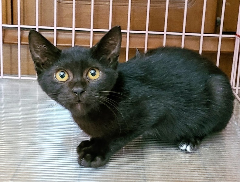 | 特徴(性格など) | 綺麗な黒猫ちゃんで、左あんよに白い「八の字」マークがあります。好奇心旺盛で人間にも慣れており、抱っこも出来る甘えん坊です。 | ||