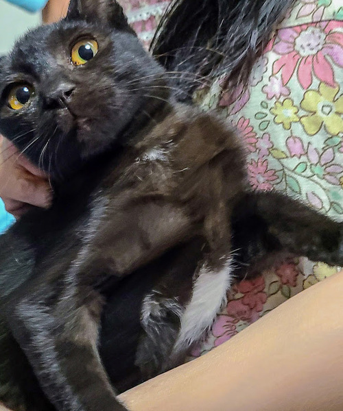 | 特徴(性格など) | 胸に白いハートマークのある綺麗な黒猫ちゃんです。 お外では勇気のある大胆ちゃんでしたが、保護している今は少し怖がりさんです。頭の良い子だと思います。 |