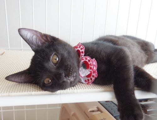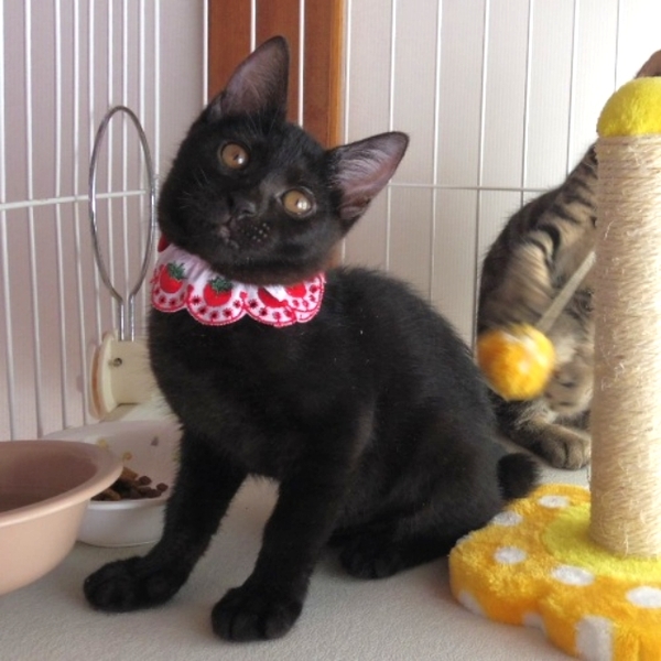 | 特徴(性格など) | 家の中で生まれ育っているので人馴れしています。優しくて、ちょっぴりくいしんぼな女のこです。ひこくんと兄弟です。 | ||