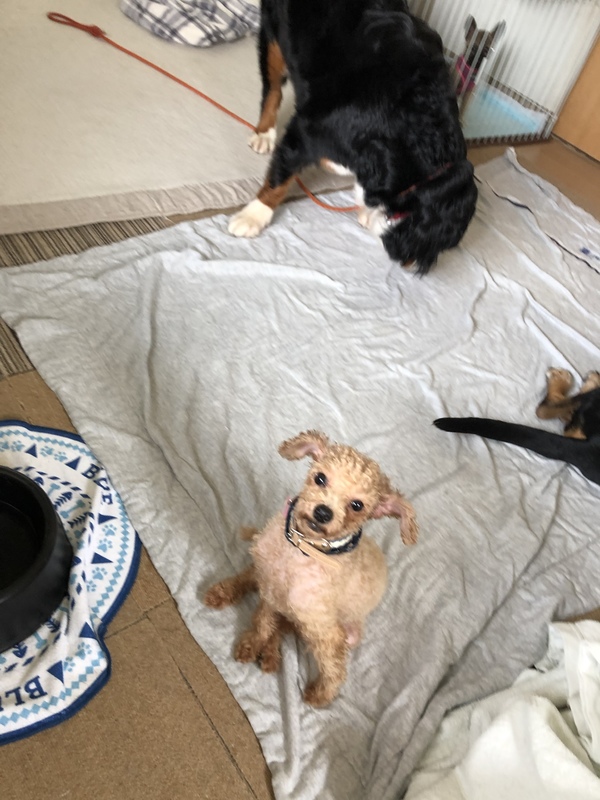 | 特徴(性格など) | 名前:ショパール 犬種:トイプードル 性別:メス♀ 毛色:アプリコット 年齢:2〜3歳 体重:3.6kg(プチダイエット中) 性格:とても明るくて、元気でよく動く!キャピキャピしてるトイプードル のショパールです。 トイプードル の天真爛漫さとぴょんぴょん跳ねるような動きなど可愛いところが満載です。 遊んで!と他の犬や人に吠えることがありますが、チャイムや他の犬につられて吠える事はないです。 トイレは、サインがドタバタしてとてもわかりやすいので笑、ドタバタし始めたらサークルなどに入れてトイレしてもらうようにしてます。 留守番はとても賢く出来ます。サークルの中でさせてるのですが、吠えたりなどはしません。 他の犬とも問題ないです。とても遊びたがりな子です。 ただ、相手が眠そうなのに、空気読まずに遊びにしつこく誘うことがあるので、その時は止めてあげてください。 |