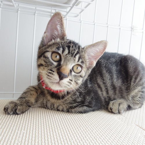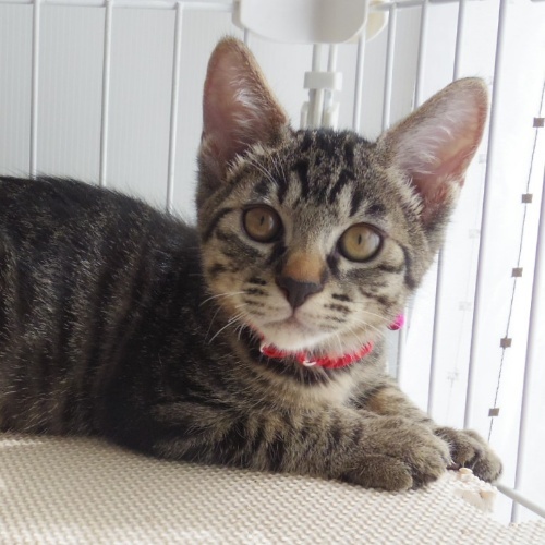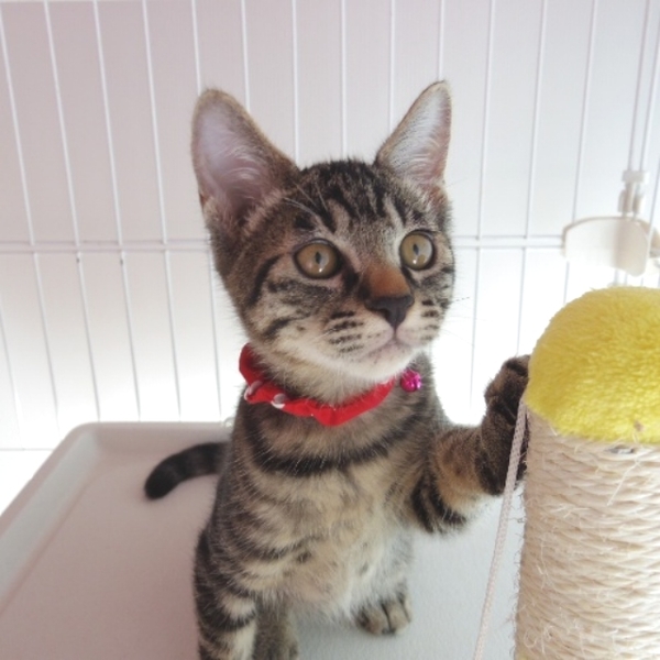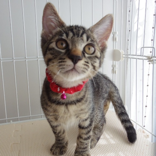| 特徴(性格など) | 遊び好きで、じゃらしで誘うとすぐ釣られてきます(笑)ちょっぴり弱虫ちゃんですが、素直で優しいいいこです。おりちゃんと兄弟です。 | ||