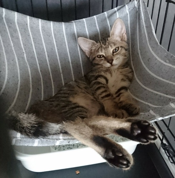 | 里親募集する理由 | 交通量の多い交差点で鳴いているところを保護されました。最初の保護者の住居がペット禁止マンションのため、引き受けることになりました。 | ||